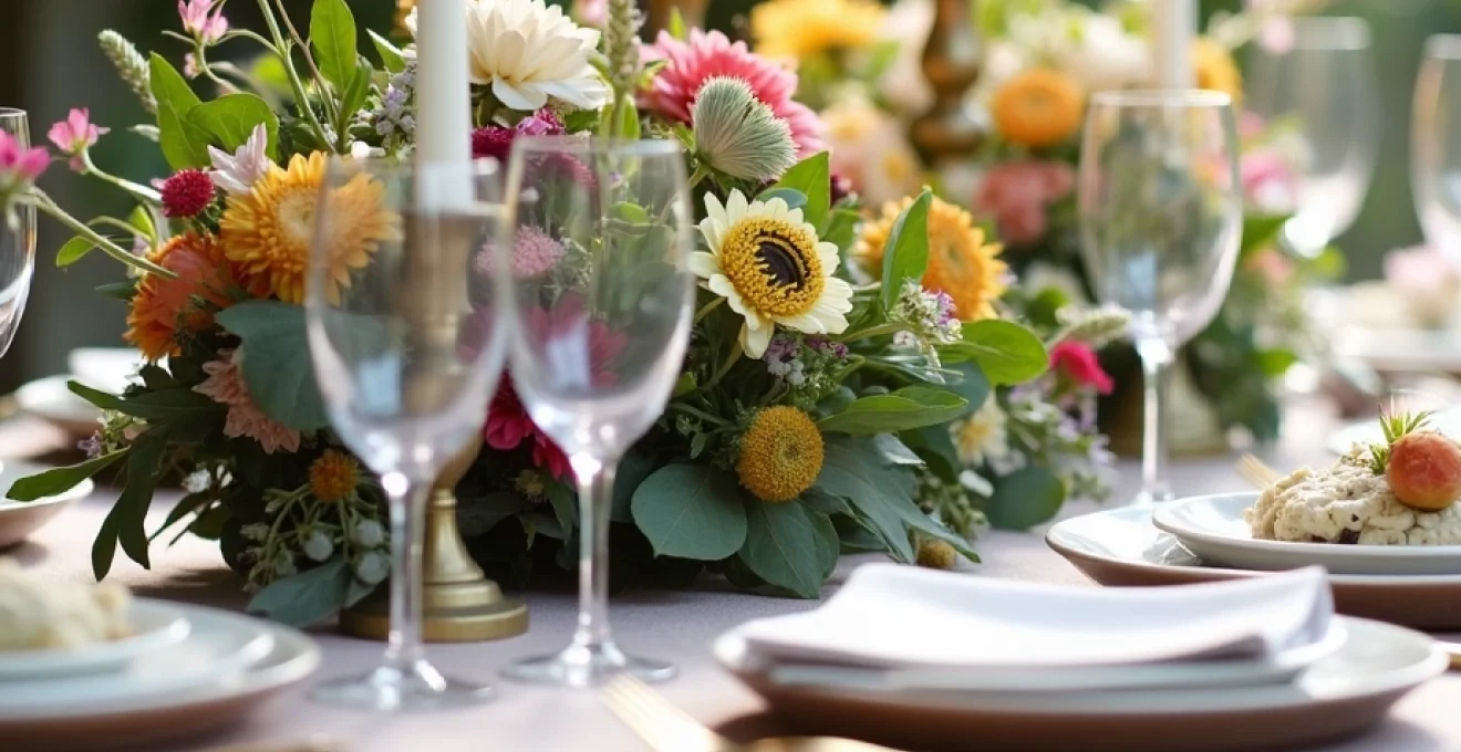 Les fleurs sauvages et les herbes aromatiques locales sont des choix parfaits pour une décoration de table naturelle et parfumée. Elles apportent une touche de fraîcheur et de spontanéité à l’ensemble. Optez pour des variétés de saison cueillies dans la région pour garantir leur fraîcheur et réduire l’empreinte carbone. Des bouquets de lavande, de camomille ou de bleuets peuvent créer un effet champêtre charmant, tandis que des herbes comme le romarin, le thym ou la sauge ajoutent une dimension olfactive agréable.