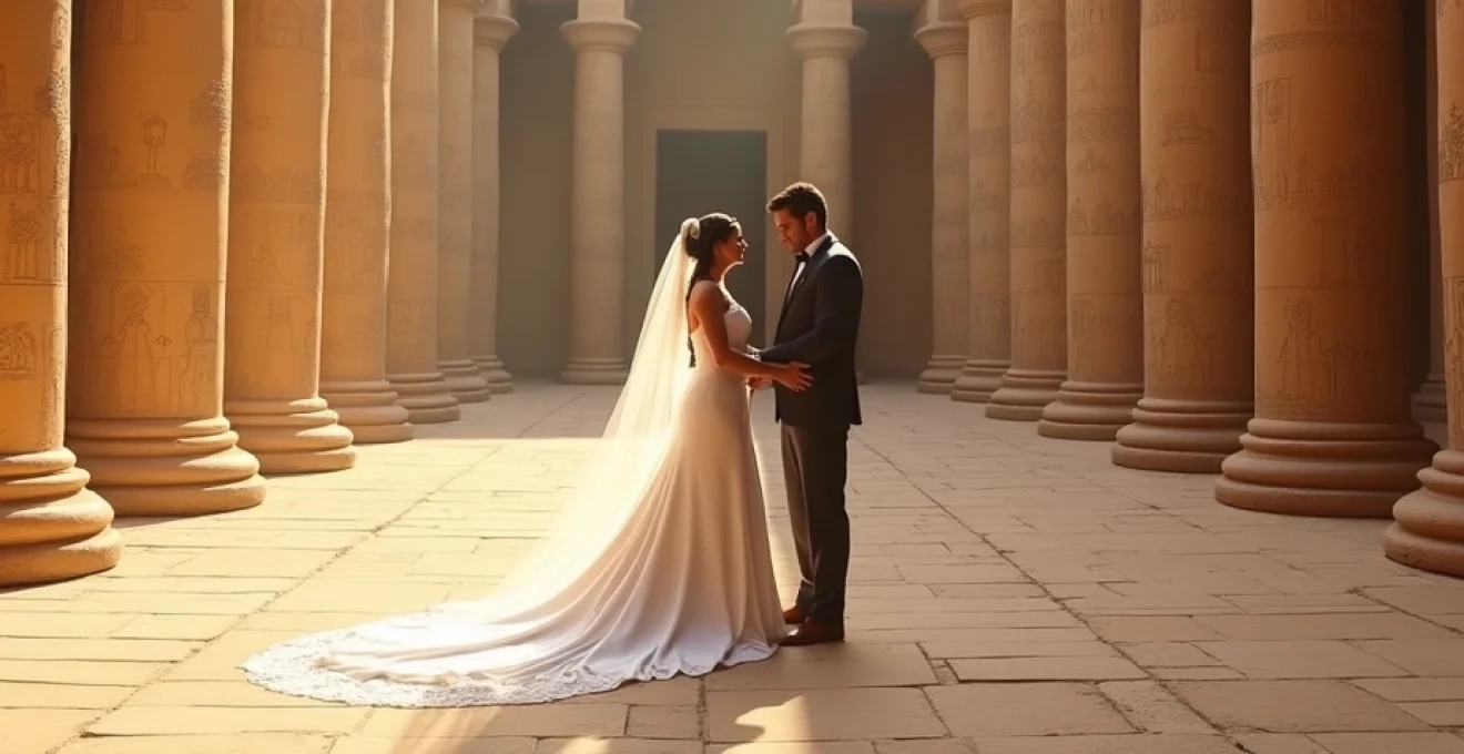 L’utilisation de symboles sacrés égyptiens dans une cérémonie de mariage moderne crée un pont entre passé et présent, insufflant une aura de mystère et de spiritualité à l’union.